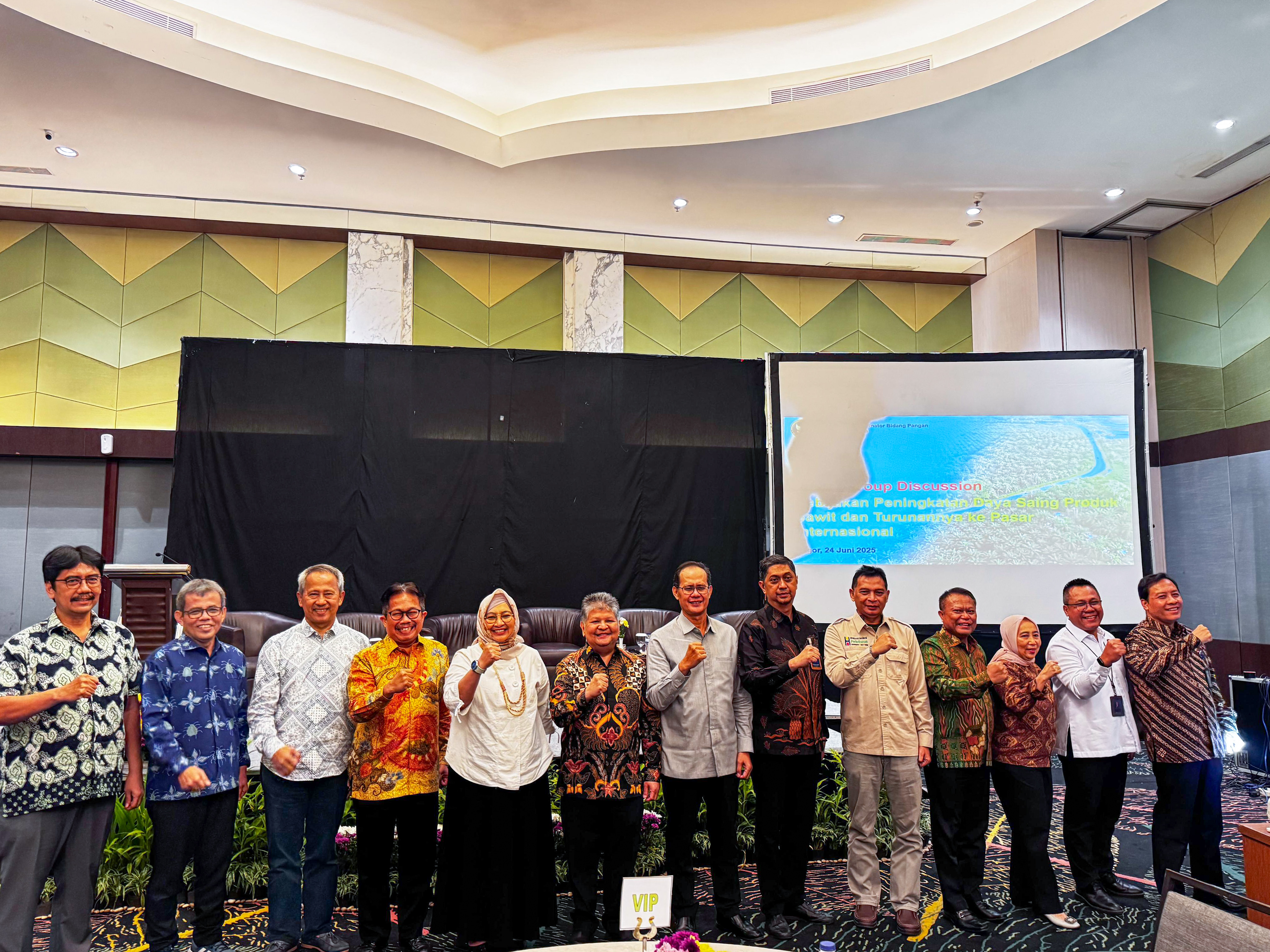 Kepala Badan Kebijakan Perdagangan (BKPerdag), Rusmin Amin menjadi Salah satu narasumber dalam kegiatan Focus Group Discussion (FGD) Kebijakan Peningkatan Daya Saing Produk Sawit dan Turunannya di Pasar Internasional yang diselenggarakan oleh Deputi Peningkatan Daya Saing Perkebunan Holtikultura Kementerian Koordinator Bidang Pangan pada hari Selasa (24/06/25) di IPB International Convention Center, Bogor, Jawa Barat. Adapun dalam sesi panel, Kepala BKPerdag beserta para narasumber membahas isu terkait sistem ketertelusuran Indonesian Sustainable Palm Oil (ISPO) yang dapat digunakan oleh industri kelapa sawit nasional dalam menghadapi hambatan yang diterapkan oleh Uni Eropa melalui kebijakan European Union Deforestation Regulation (EUDR). Kegiatan tersebut turut menghadirkan sejumlah narasumber yang berasal dari Kementerian Pertanian, Badan Standarisasi Nasional, serta Universitas Padjadjaran. Turut mendampingi dalam kegiatan tersebut Sekretaris Badan Kebijakan Perdagangan. (AS)