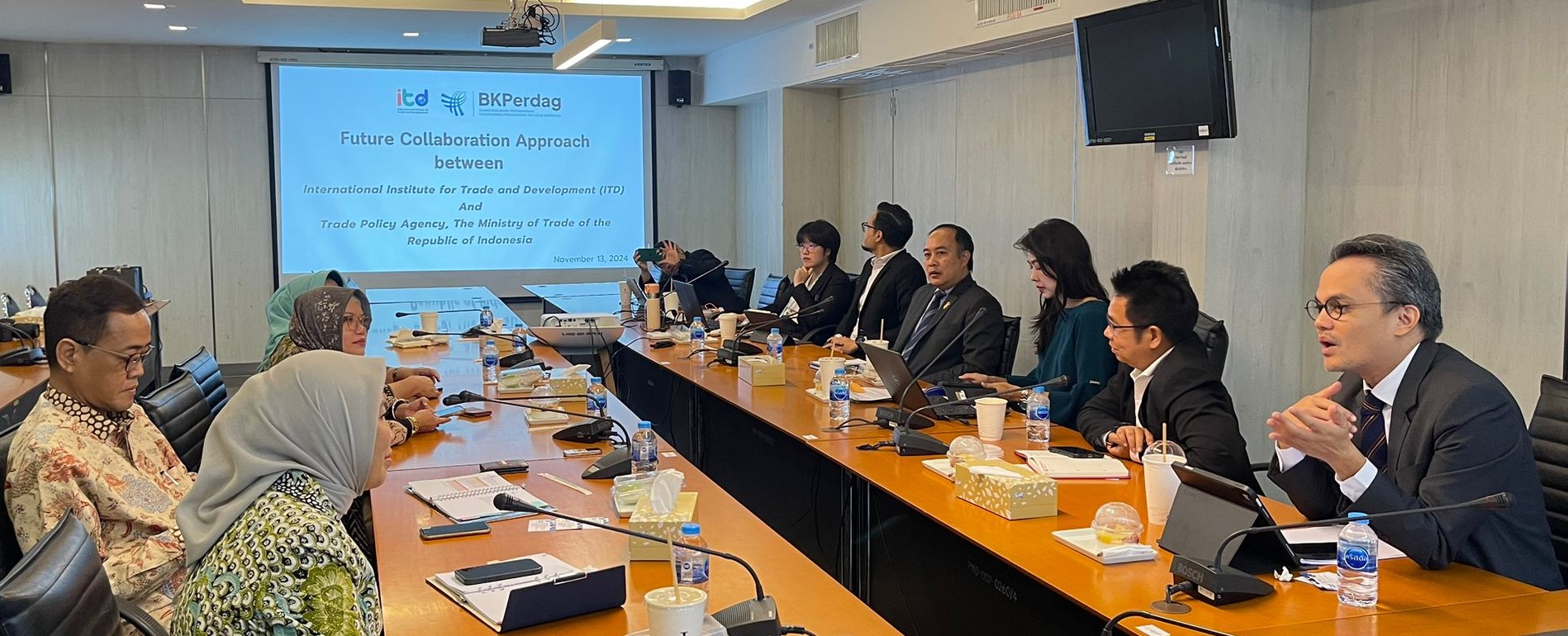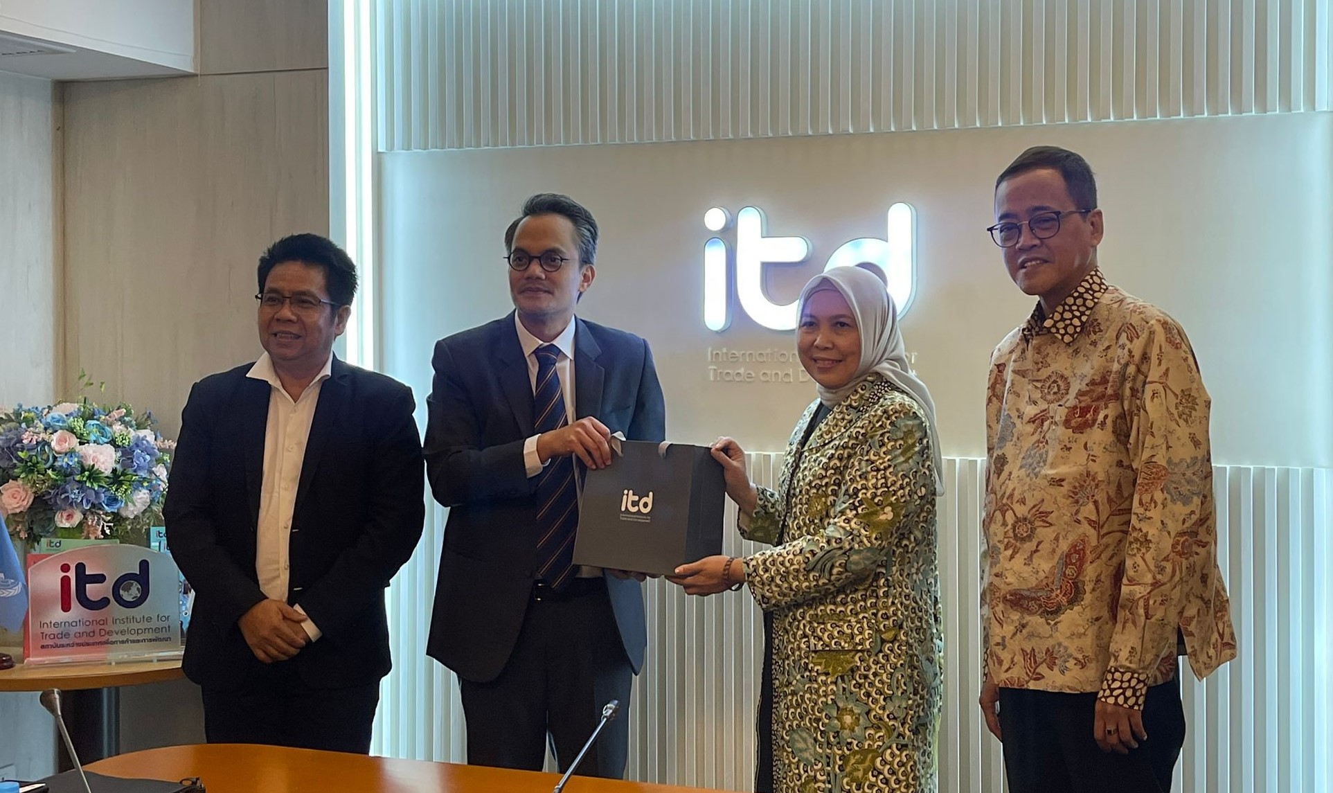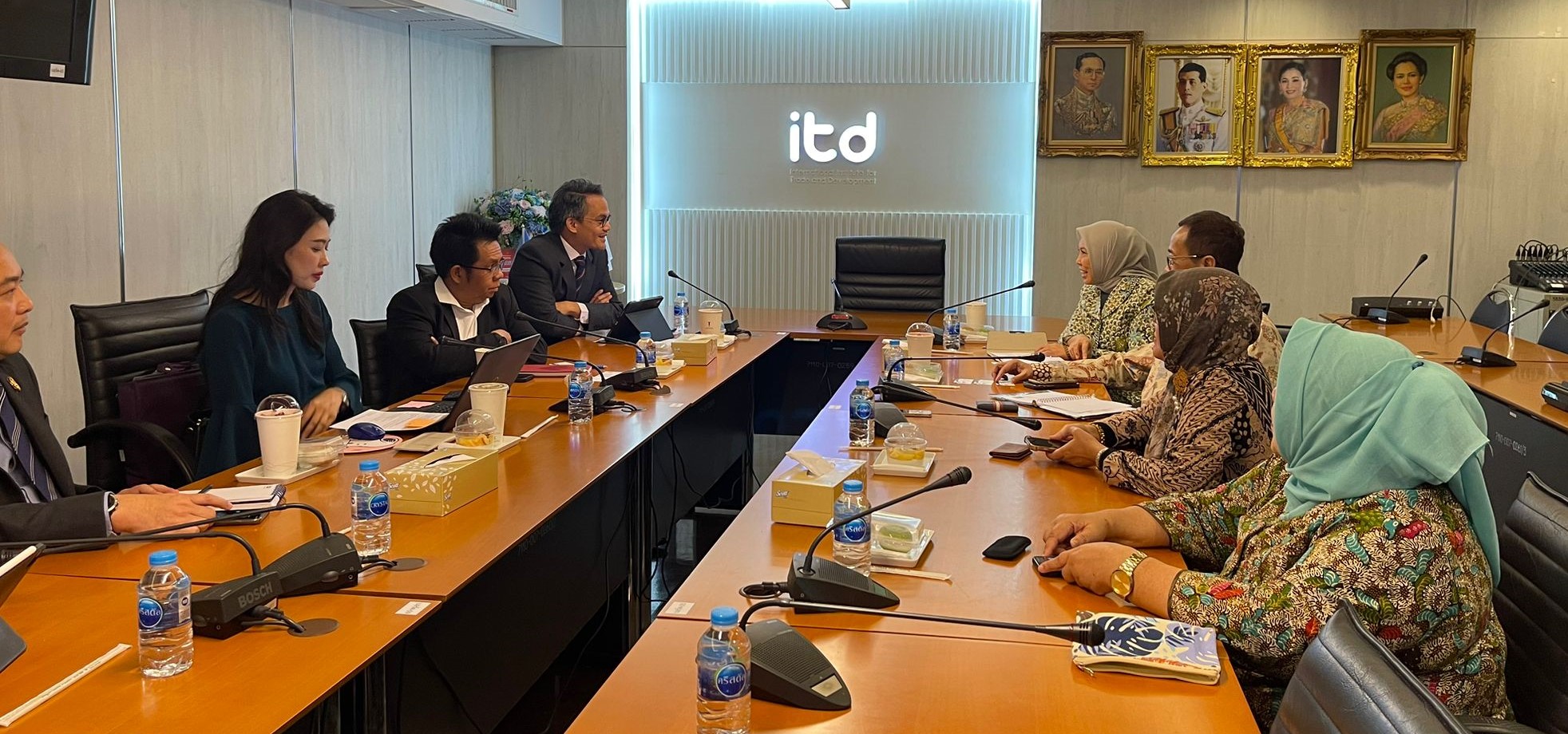 Kepala Badan Kebijakan Perdagangan (BKPerdag), Fajarini Puntodewi melakukan audiensi dengan Direktur Eksekutif International Institute for Trade and Development (ITD) Thailand, Suphakit Charoenkul pada Rabu (13/11/24) di Kantor ITD Bangkok, Thailand. ITD merupakan merupakan organisasi publik yang didirikan oleh Pemerintah Thailand untuk menyediakan pelatihan dan penelitian di bidang perdagangan dan pembangunan. Dalam pertemuan tersebut, Kepala BKPerdag menyampaikan tujuan audiensi adalah untuk menindaklanjuti rencana kolaborasi antara BKPerdag dan ITD. Sebelumnya, perwakilan ITD juga berkesempatan berkunjung ke kantor BKPerdag pada Juli 2024 dalam rangka penelitian di bidang perdagangan. Audiensi dengan ITD merupakan rangkaian agenda kunjungan kerja Kepala BKPerdag ke Bangkok, Thailand pada 11-14 November 2024. Turut hadir mendampingi dalam kunjungan kerja, Sekretaris BKPerdag dan Atase Perdagangan RI di Bangkok. (KTP)