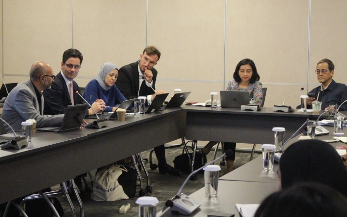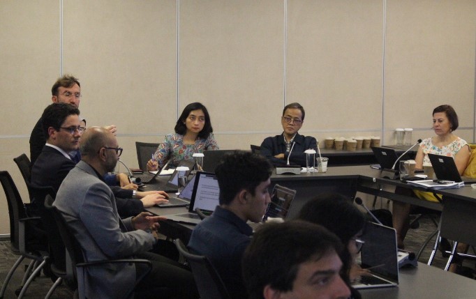 Sekretaris Badan Kebijakan Perdagangan (BKPerdag), Ari Satria memimpin pertemuan dengan mitra pengembangan kegiatan (development partner session) Action on Climate and Trade (ACT) pada Rabu (6/11/24) di Kantor World Bank, Jakarta. Tujuan pertemuan adalah untuk mendiskusikan berbagai aksi nyata yang telah dilakukan berbagai pihak dan rencana kolaborasi untuk mendukung perdagangan hijau Indonesia. Hadir dalam kesempatan tersebut antara lain, Laksmi Kusumawati (Bappenas), Avina Sugiarto (East Ventures/ECOVISEA), Ketan Patel (Enveritas), Dian Septa Rianti (SECO Kedutaan Besar Swiss), Sascha Reebs (Kedutaan Besar Jerman), Tina Bucton (Kedutaan Besar Amerika Serikat), Dandy Rafitrandi (CSIS), Achmad Shauki (Prospera), serta tim ACT dari World Bank (WB), World Economic Forum (WEF), dan World Trade Organization (WTO). Pertemuan merupakan salah satu rangkaian kegiatan ACT Final Workshop yang diselenggarakan oleh BKPerdag bekerjasama dengan WB, WEF, dan WTO pada 4-8 November 2024. (KTP)