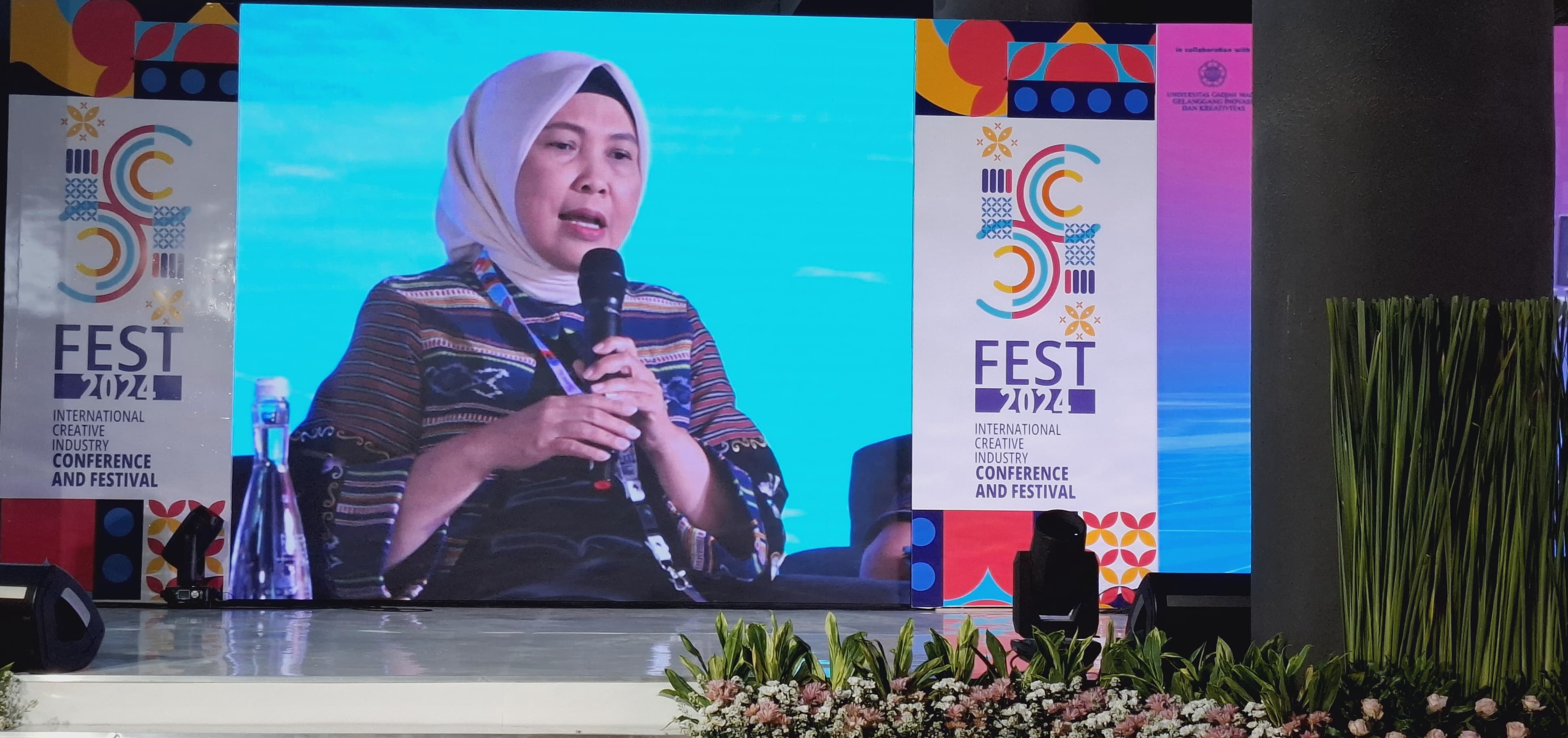 Kepala Badan Kebijakan Perdagangan (BKPerdag), Fajarini Puntodewi menjadi pembicara dalam sesi High Level Talks International Creative Industry Conference and Festival (ICFEST) 2024 pada Kamis (26/9/24) di Gelanggang Inovasi dan Kreativitas (GIK) Universitas Gadjah Mada (UGM), Yogyakarta. Dalam kesempatan tersebut, Kepala BKPerdag menyampaikan strategi dan kebijakan Kementerian Perdagangan dalam mendukung perdagangan produk kreatif Indonesia, termasuk melalui berbagai perjanjian kerja sama perdagangan internasional. Sesi High Level Talks ICFEST 2024 juga menghadirkan narasumber Rahayu Saraswati (Anggota DPR RI), Rizki Handayani (Deputi Bidang Industri dan Investasi Kementerian Pariwisata dan Ekonomi Kreatif), Ismed Saputra (Direktur Utama Pusat Investasi Pemerintah), dan Hilmar Farid (Direktur Jenderal Kebudayaan Kementerian Pendidikan, Kebudayaan, Riset, dan Teknologi), dengan moderator Gupta Sitorus (CSMO WIR Group). ICFEST 2024 diselenggarakan pada 26-28 September 2024 oleh Kementerian Pariwisata dan Ekonomi Kreatif bekerja sama dengan UGM yang dibuka secara resmi oleh Menteri Pariwisata dan Ekonomi Kreatif. Turut hadir mendampingi Kepala BKPerdag dalam kegiatan Sekretaris BKPerdag, Ari Satria. (KTP)