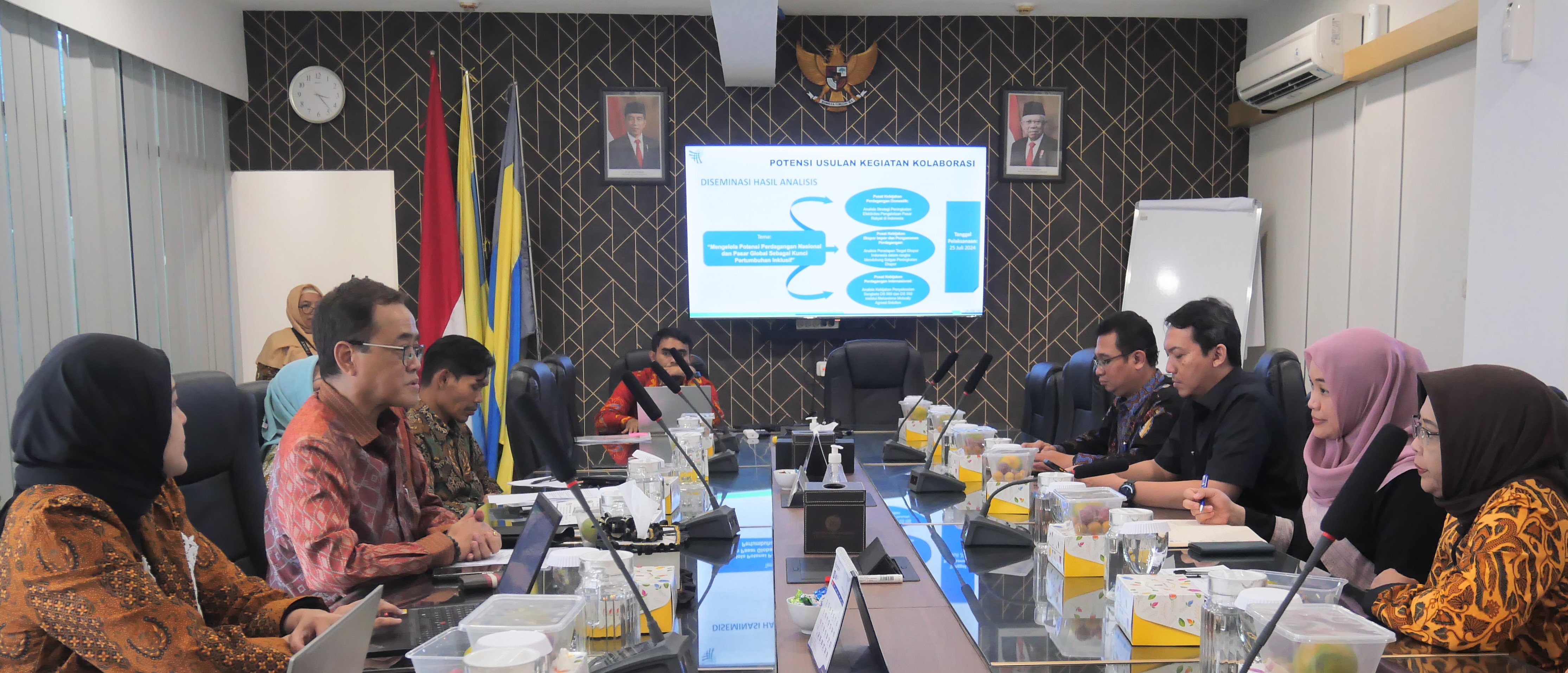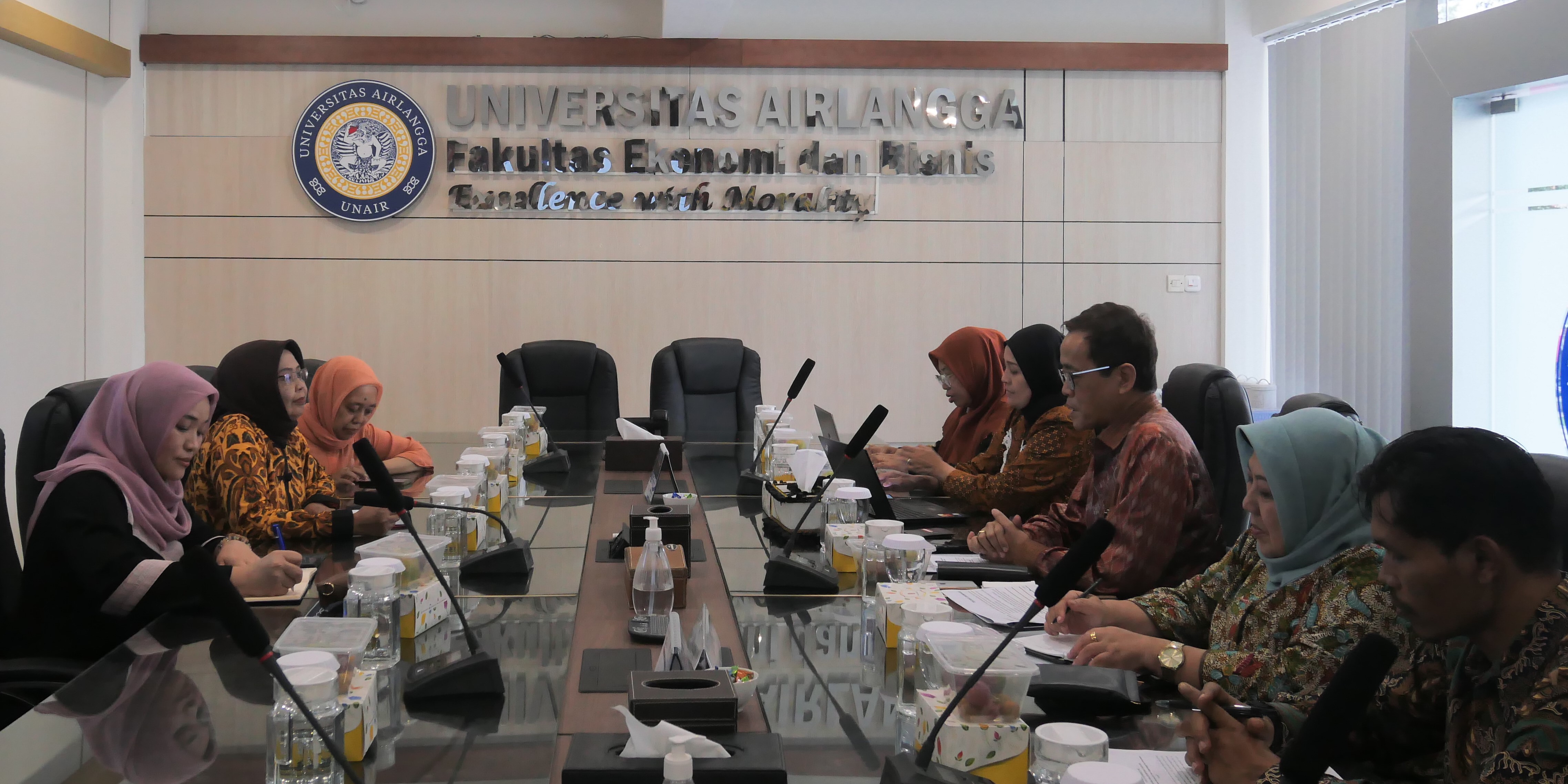 Sekretaris Badan Kebijakan Perdagangan (BKPerdag), Ari Satria melakukan kunjungan kerja ke Fakultas Ekonomi dan Bisnis (FEB) Universitas Airlangga Surabaya, Jawa Timur pada Rabu (12/6/24). Dalam kunjungan tersebut, Sekretaris BKPerdag melakukan pertemuan dengan Dekan FEB Universitas Airlangga, Prof. Dr. Dian Agustia beserta Wakil Dekan I dan Wakil Dekan III. Adapun tujuan pertemuan adalah penjajakan kerja sama BKPerdag dengan FEB Universitas Airlangga, khususnya terkait kolaborasi pelaksanaan kegiatan Diseminasi Hasil Analisis BKPerdag ke-1 Tahun 2024 yang akan dilaksanakan di Surabaya pada Juli mendatang. Turut hadir mendampingi Sekretaris BKPerdag dalam pertemuan tersebut, Ketua Tim Kerja Sama, Ketua Tim Sosialisasi dan Diseminasi, Ketua Tim Pemantauan dan Evaluasi, serta Kepala Bagian Umum Sekretariat BKPerdag. (KTP)