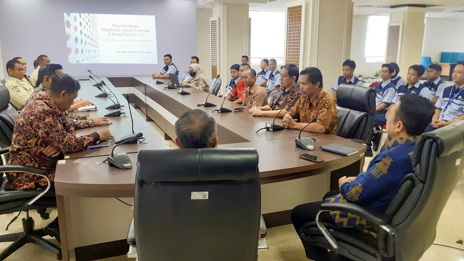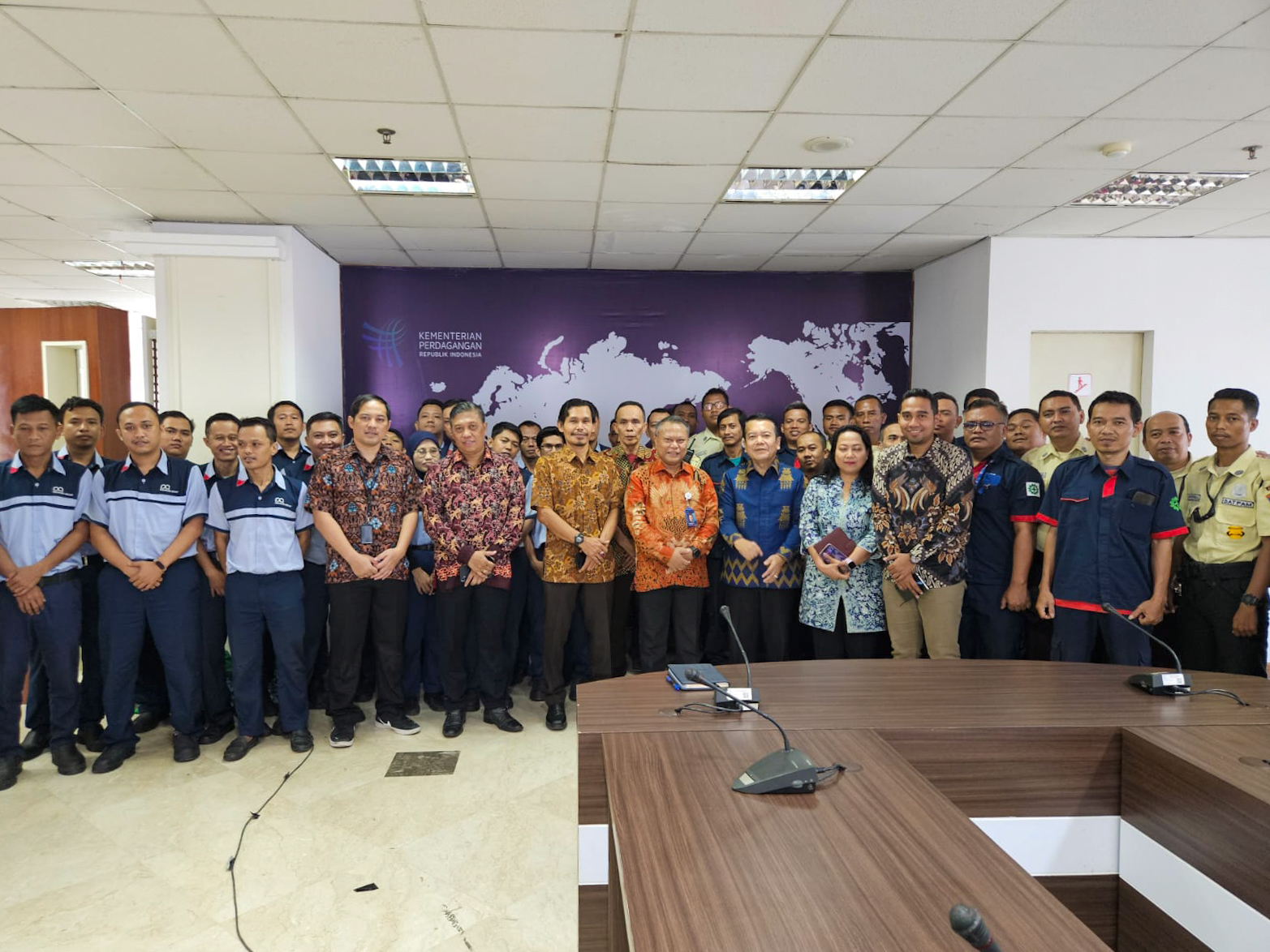 Sekretaris Badan Kebijakan Perdagangan (BKPerdag) Muhammad Suaib Sulaiman bersama Sekretaris Badan Pengembangan Sumber Daya Manusia (BPSDM), Ojak Simon Manurung memimpin Rapat Koordinasi Pengelolaan Gedung Kementerian Perdagangan Selama Libur Hari Raya Idul Fitri 1446 H pada hari Jumat (21/3/25) di Kementerian Perdagangan. Dalam rapat tersebut Sekretaris BKPerdag dan Sekretaris BPSDM memberikan sejumlah arahan kepada para tenaga kebersihan, petugas keamanan, serta teknisi terkait pengelolaan Gedung Kementerian Perdagangan yang berlokasi di Kecamatan Senen selama masa libur Hari Raya Idul Fitri 1446 H. Turut hadir dalam rapat tersebut Kepala Bagian Umum Sekretariat BKPerdag. (AS)