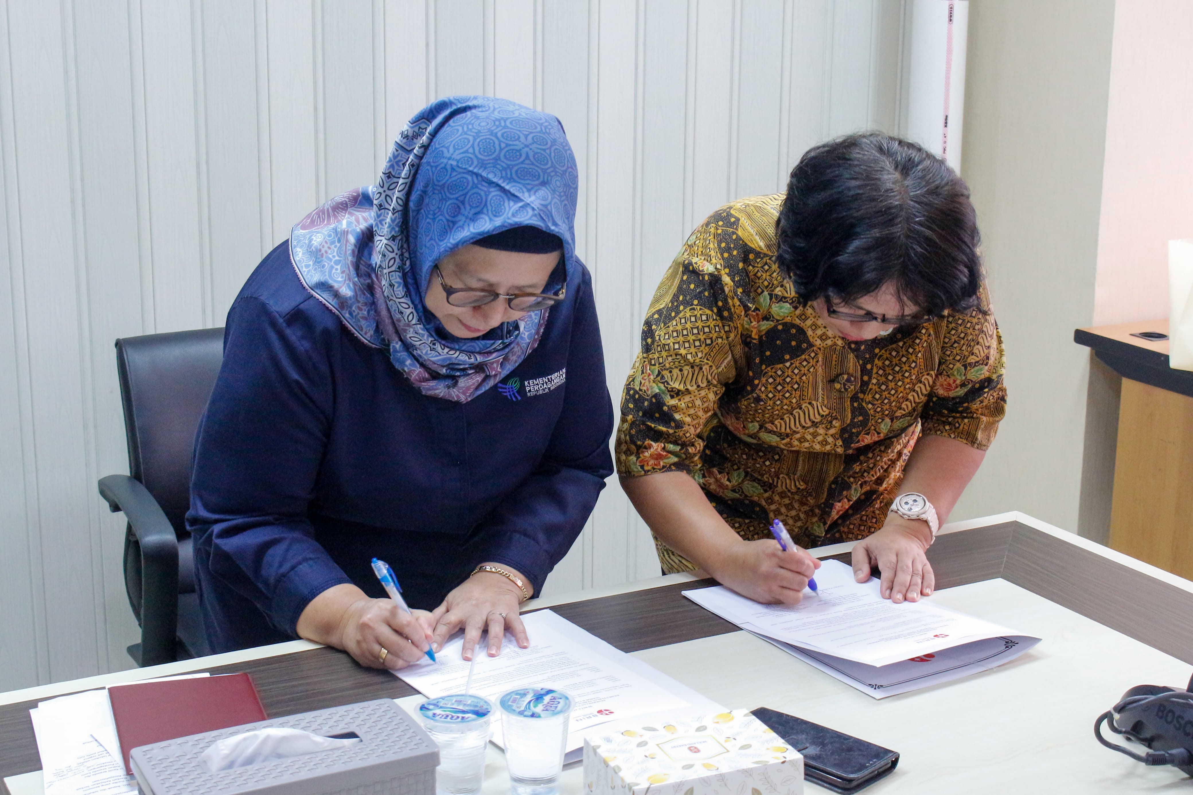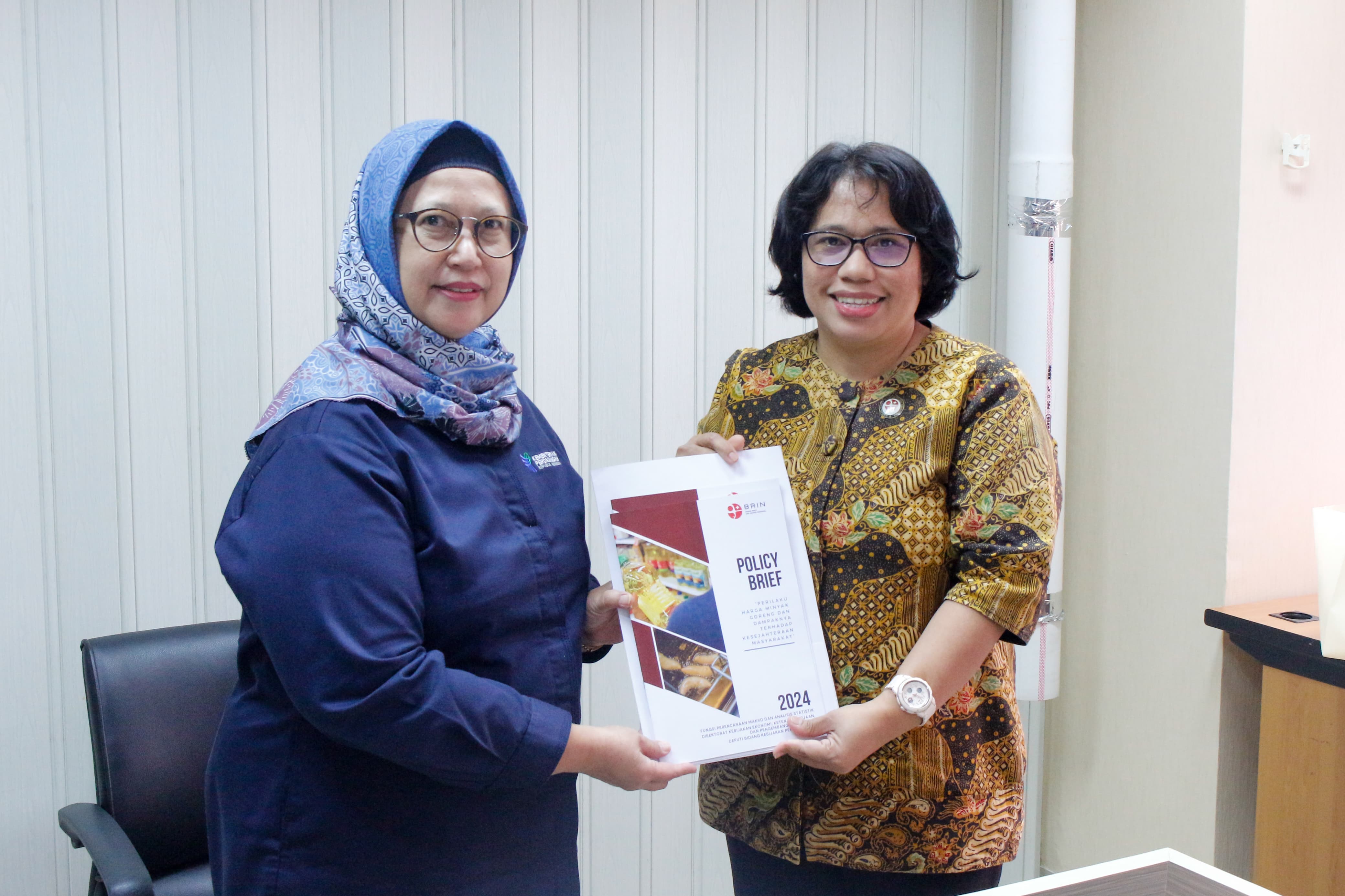 Kepala Pusat Kebijakan Perdagangan Domestik (Puska PD), Rr. Dyah Palupi menerima naskah kebijakan dari Direktur Kebijakan Ekonomi, Ketenagakerjaan, dan Pengembangan Regional Badan Riset dan Inovasi Nasional (BRIN), Yurike Patrecia Marpaung pada hari Rabu (18/12/24) di Kementerian Perdagangan. Dalam kesempatan tersebut, Yurike menyerahkan naskah kajian berjudul "Perilaku Harga Minyak Goreng dan Dampaknya Terhadap Kesejahteraan Masyarakat" kepada Rr. Dyah Palupi. Adapun naskah kebijakan tersebut nantinya akan dimanfaatkan dalam proses penyusunan analisis yang dilakukan oleh Puska PD. Turut hadir mendampingi dalam pertemuan tersebut perwakilan Sekretariat Badan Kebijakan Perdagangan. (AS)