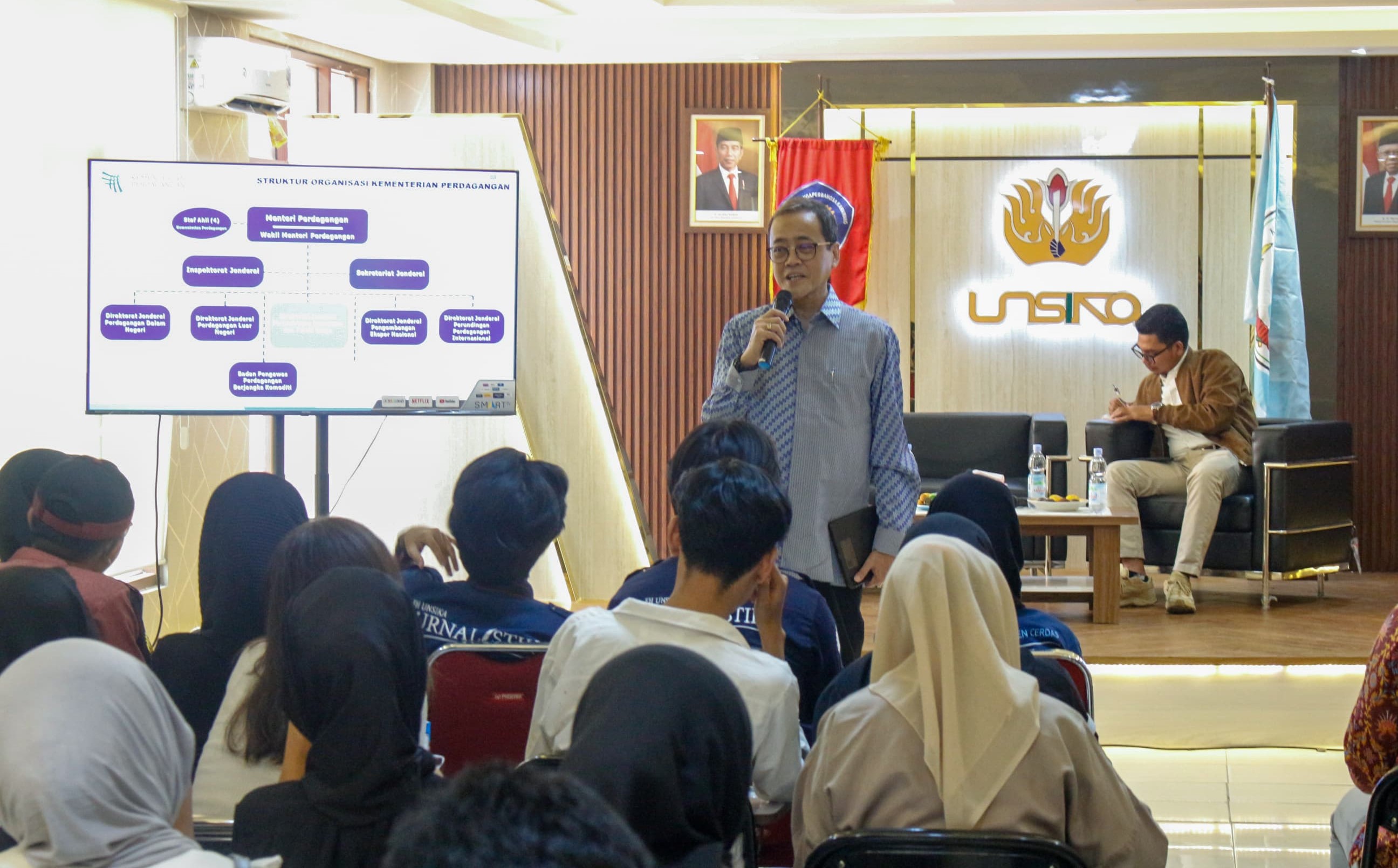 Sekretaris Badan Kebijakan Perdagangan (BKPerdag), Ari Satria menjadi salah satu narasumber dalam Seminar Nasional dengan tema "Menavigasi Dinamika dan Transformasi Konsumen di Era Society 5.0" yang diselenggarakan oleh Unit Kegiatan Mahasiswa (UKM) Komunitas Konsumen Cerdas Fakultas Hukum Universitas Singaperbangsa Karawang (UNSIKA) pada Sabtu (19/10/24) di Auditorium UNSIKA Karawang, Jawa Barat. Kegiatan dibuka oleh Wakil Dekan Fakultas Hukum UNSIKA dan dihadiri oleh para mahasiswa Fakultas Hukum UNSIKA. Dalam kegiatan tersebut, Sekretaris BKPerdag menyampaikan peran Kementerian Perdagangan dalam melindungi konsumen dan pentingnya menjadi konsumen yang berdaya di era Industri 5.0. Turut hadir sebagai narasumber Kepala Badan Perlindungan Konsumen Nasional, Muhammad Mufti Mubarok dan Ketua Himpunan Badan Penyelesaian Sengketa Konsumen Provinsi Jawa Barat, Wawan Gunawan dengan moderator Dosen Fakultas Hukum UNSIKA, Erdin Tahir. (AS)