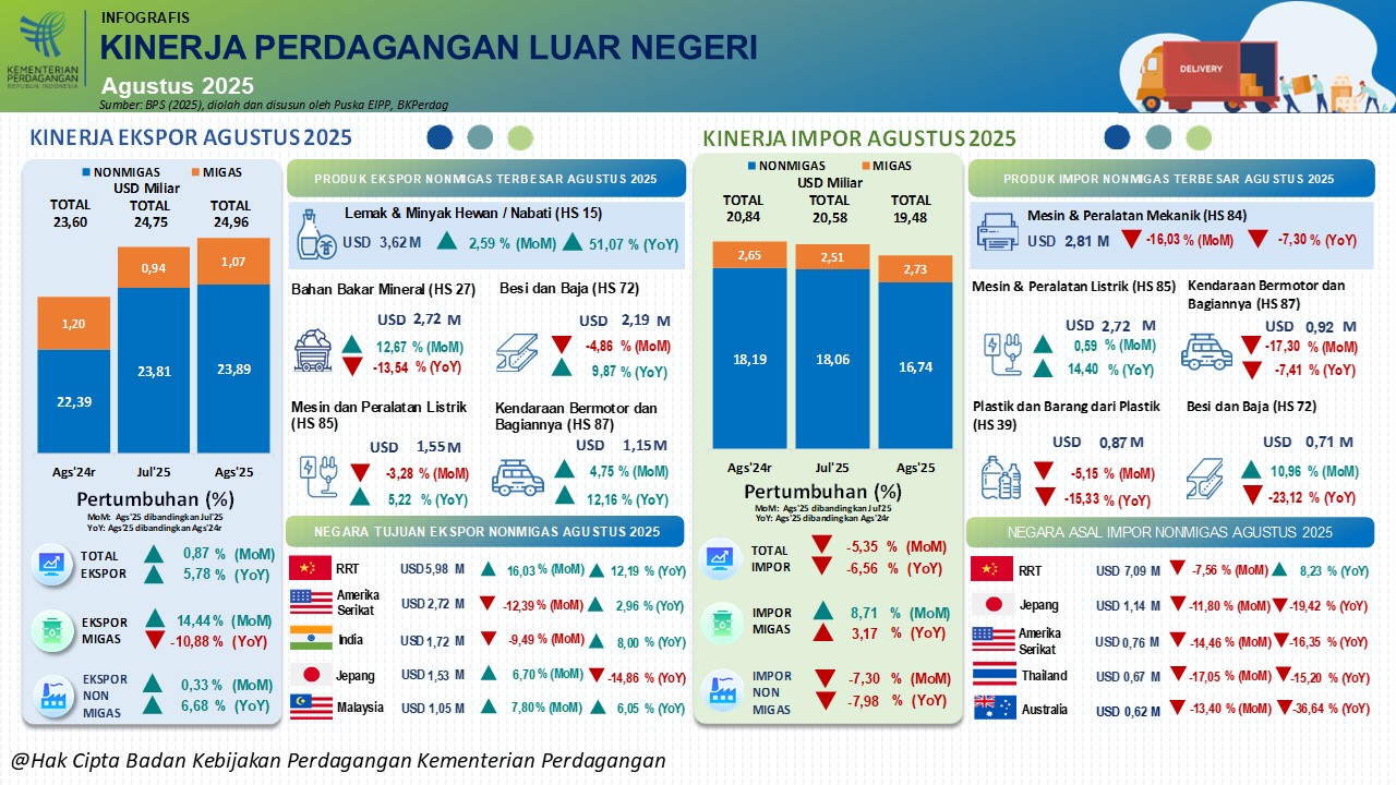 Kinerja Ekspor Impor Indonesia Periode Agustus 2025. Kinerja Ekspor Impor Indonesia Periode Agustus 2025