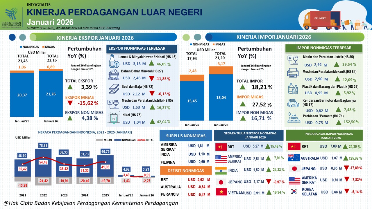 Kinerja Ekspor Impor Indonesia Periode Januari 2026. Kinerja Ekspor Impor Indonesia Periode Januari 2026