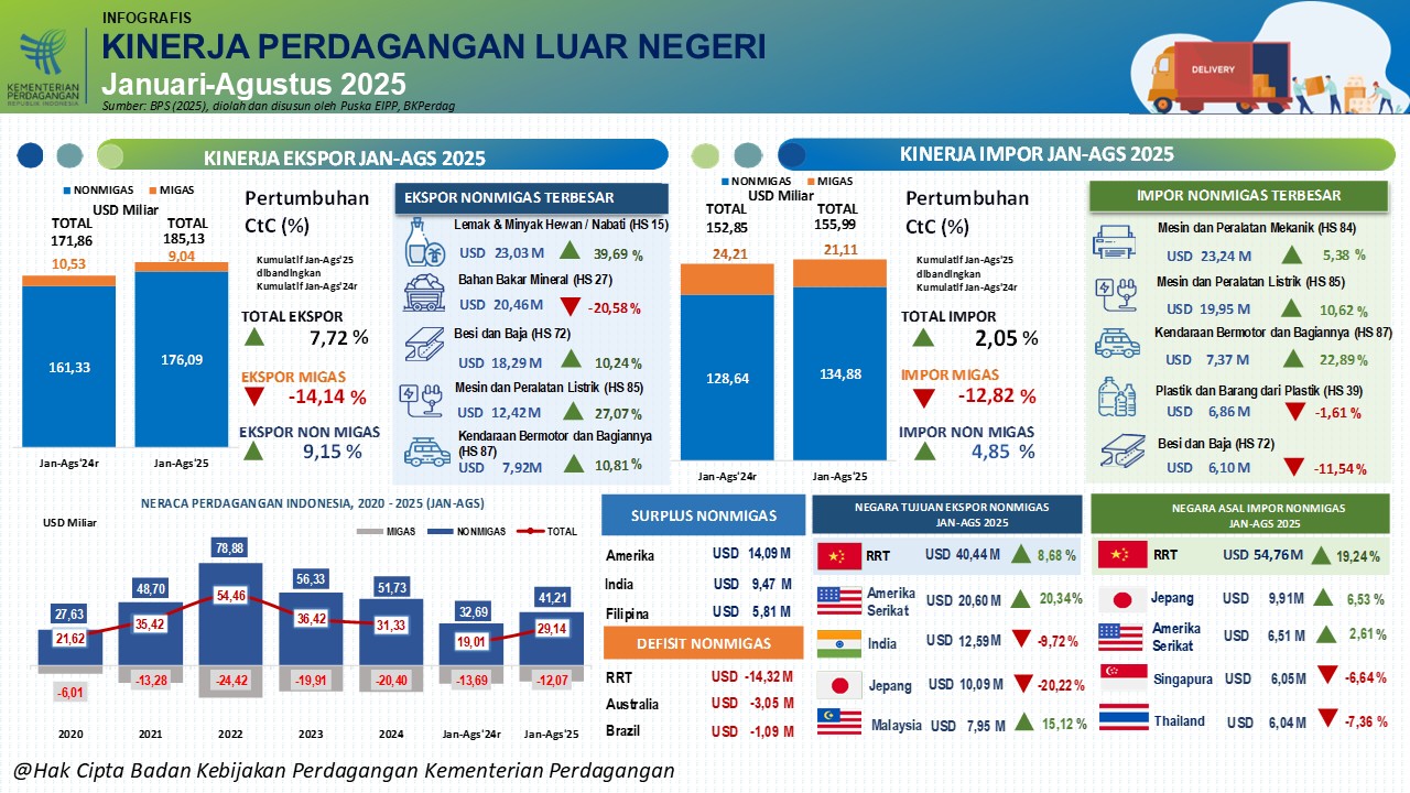 Kinerja Ekspor Impor Indonesia Periode Januari-Agustus 2025. Kinerja Ekspor Impor Indonesia Periode Januari-Agustus 2025