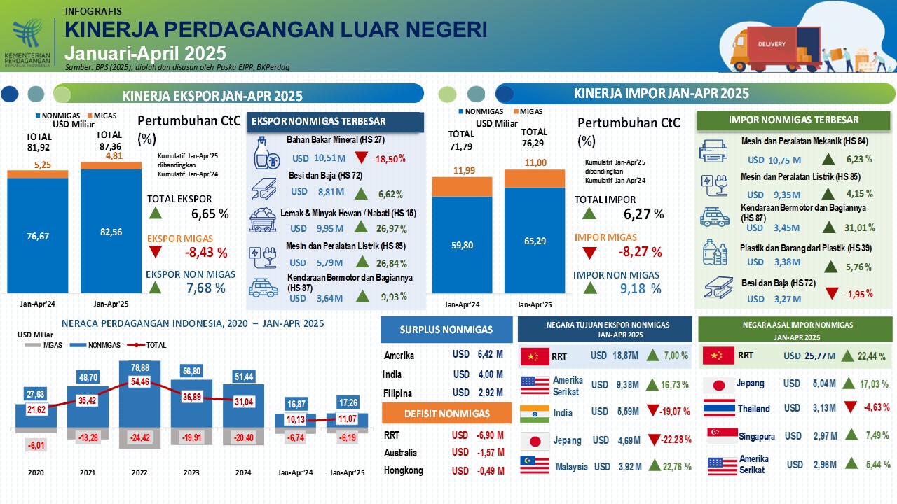 Kinerja Ekspor Impor Indonesia Periode Januari-April 2025. Kinerja Ekspor Impor Indonesia Periode Januari-April 2025