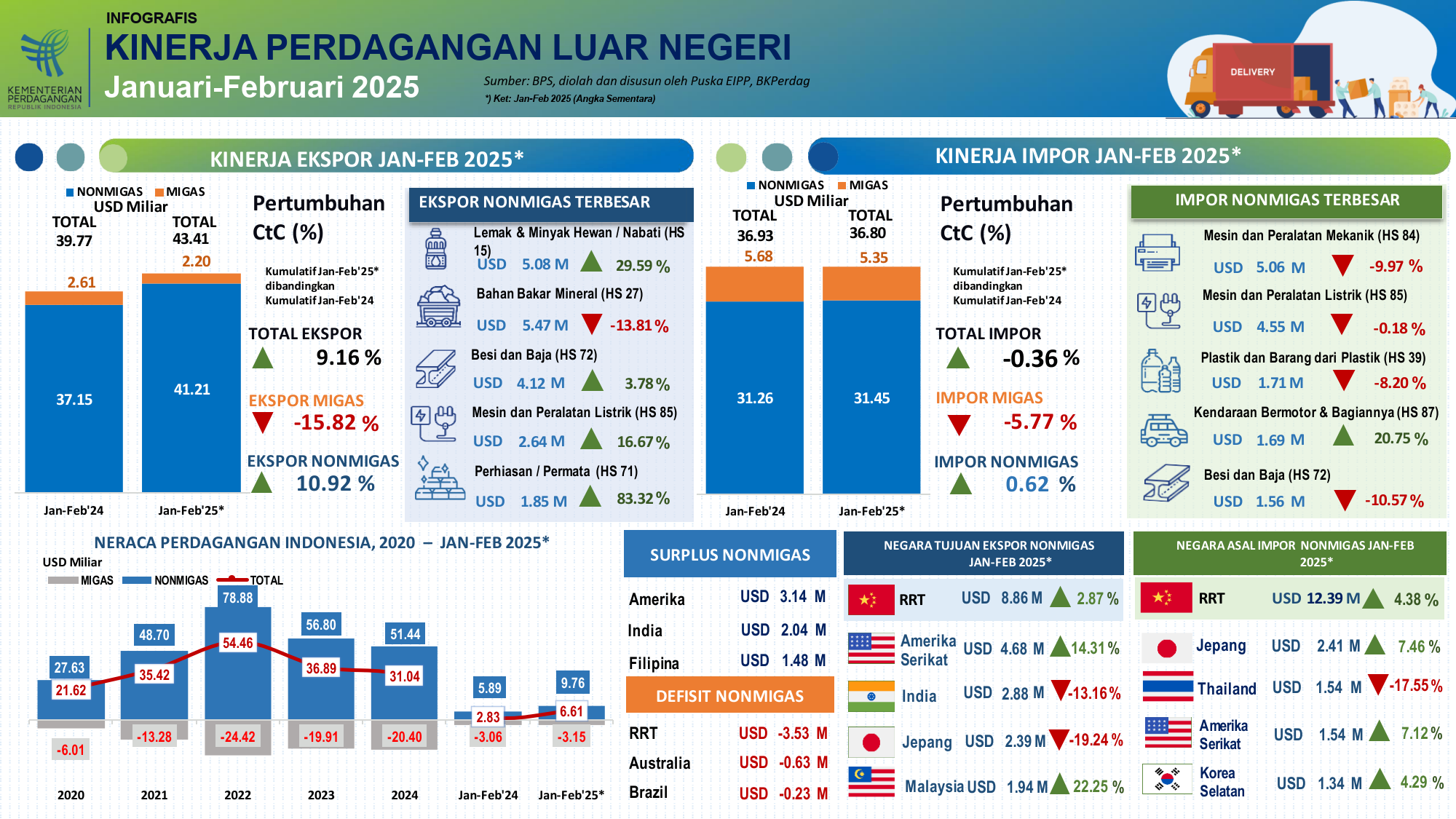 Kinerja Ekspor Impor Indonesia Periode Januari - Februari 2025