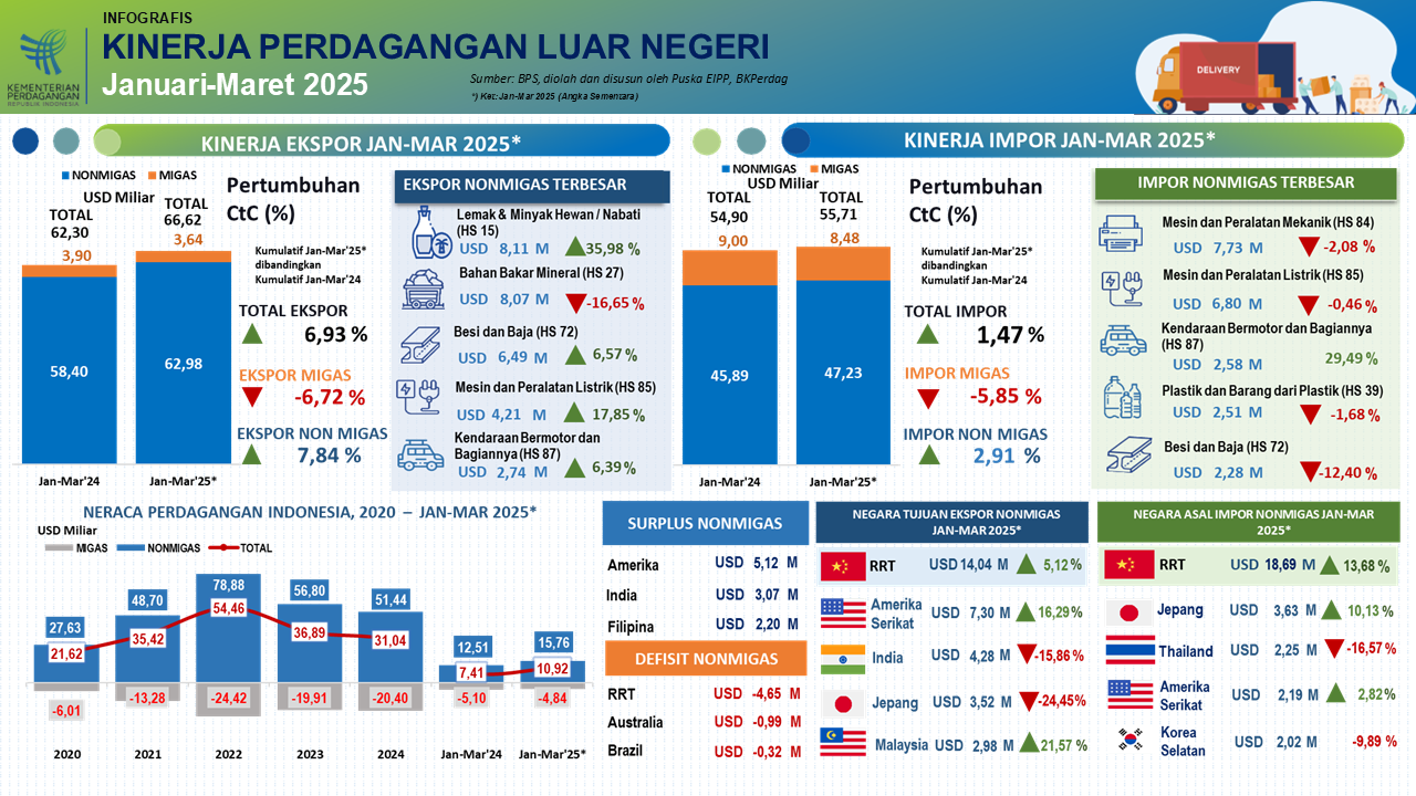 Kinerja Ekspor Impor Indonesia Periode Januari-Maret 2025. Kinerja Ekspor Impor Indonesia Periode Januari-Maret 2025