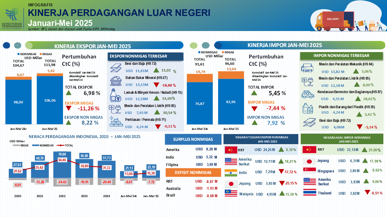 Kinerja Ekspor Impor Indonesia Periode Januari-Mei 2025. Kinerja Ekspor Impor Indonesia Periode Januari-Mei 2025