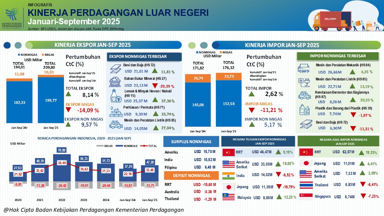 Kinerja Ekspor Impor Indonesia Periode Januari-September 2025. Kinerja Ekspor Impor Indonesia Periode Januari-September 2025