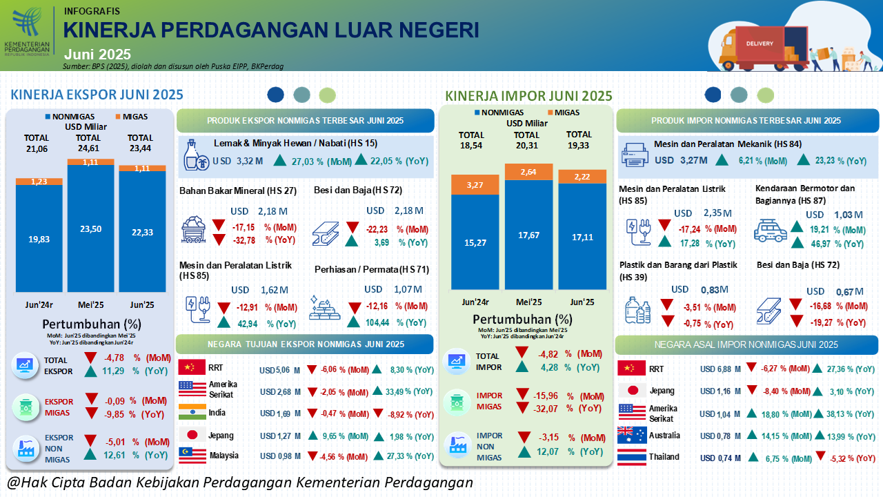 Kinerja Ekspor Impor Indonesia Periode Juni 2025. Kinerja Ekspor Impor Indonesia Periode Juni 2025