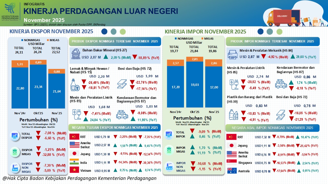 Kinerja Ekspor Impor Indonesia Periode November 2025. Kinerja Ekspor Impor Indonesia Periode November 2025