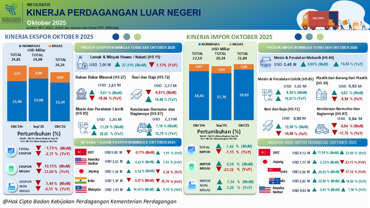 Kinerja Ekspor Impor Indonesia Periode Oktober 2025. Kinerja Ekspor Impor Indonesia Periode Oktober 2025