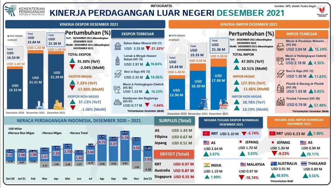 Kinerja Ekspor Impor Indonesia Tahun 2021. Kinerja Ekspor Impor Indonesia Tahun 2021