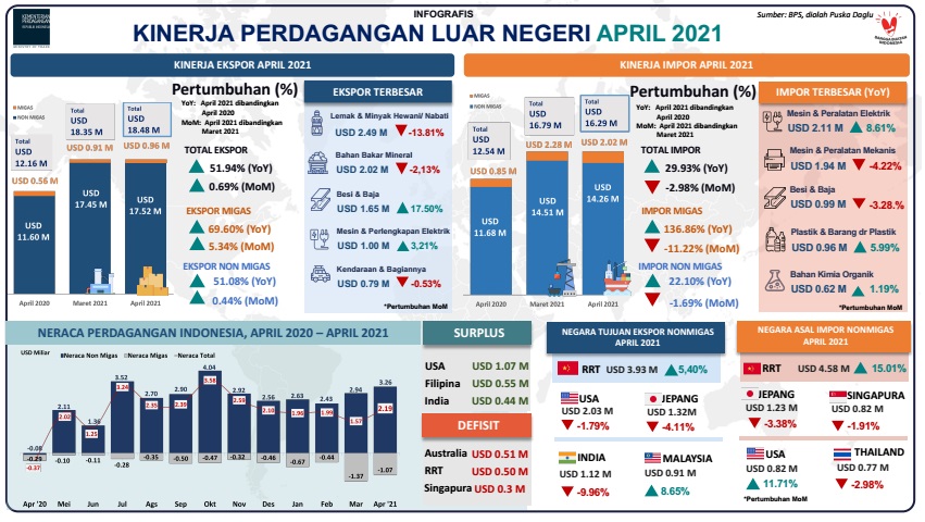 Neraca Perdagangan Kembali Mencatatkan Surplus yang Semakin Membaik. Kinerja Perdagangan Ekspor Impor Periode Mei 2021
