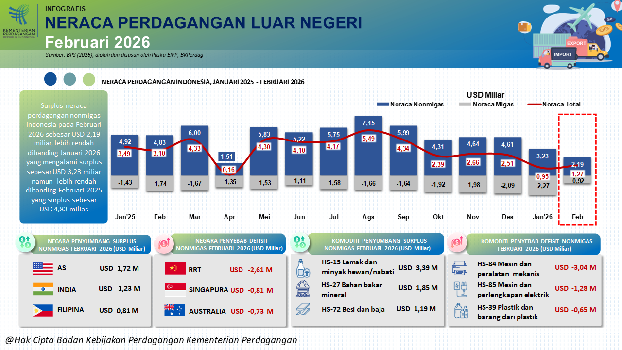 Neraca Perdagangan Luar Negeri Indonesia Periode Februari 2026. Neraca Perdagangan Luar Negeri Indonesia Periode Februari 2026