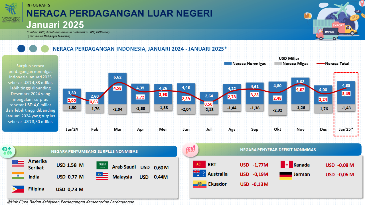 Neraca Perdagangan Luar Negeri Indonesia Periode Januari 2025. Neraca Perdagangan Luar Negeri Indonesia Periode Januari 2025