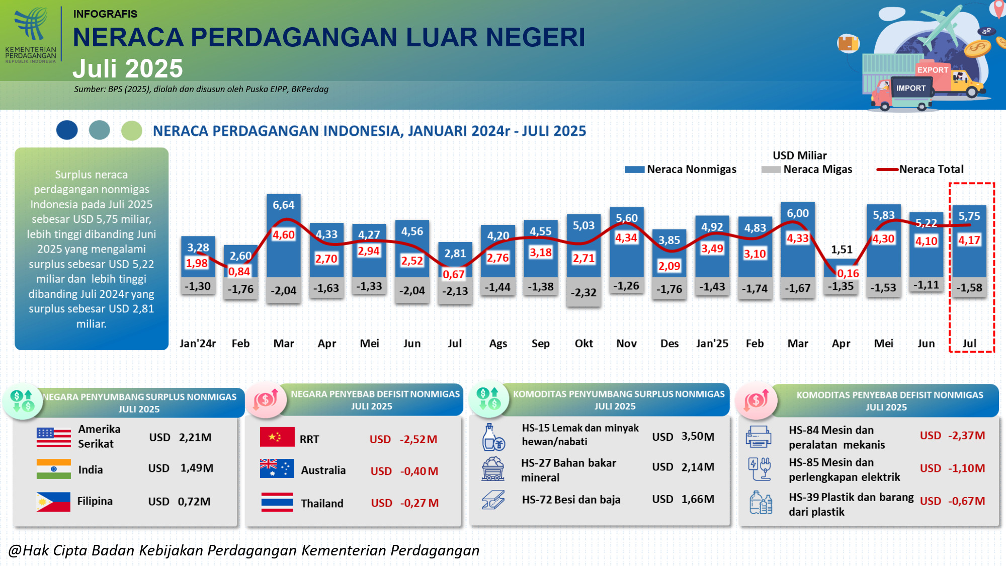 Neraca Perdagangan Luar Negeri Indonesia Periode Juli 2025. Neraca Perdagangan Luar Negeri Indonesia Periode Juli 2025
