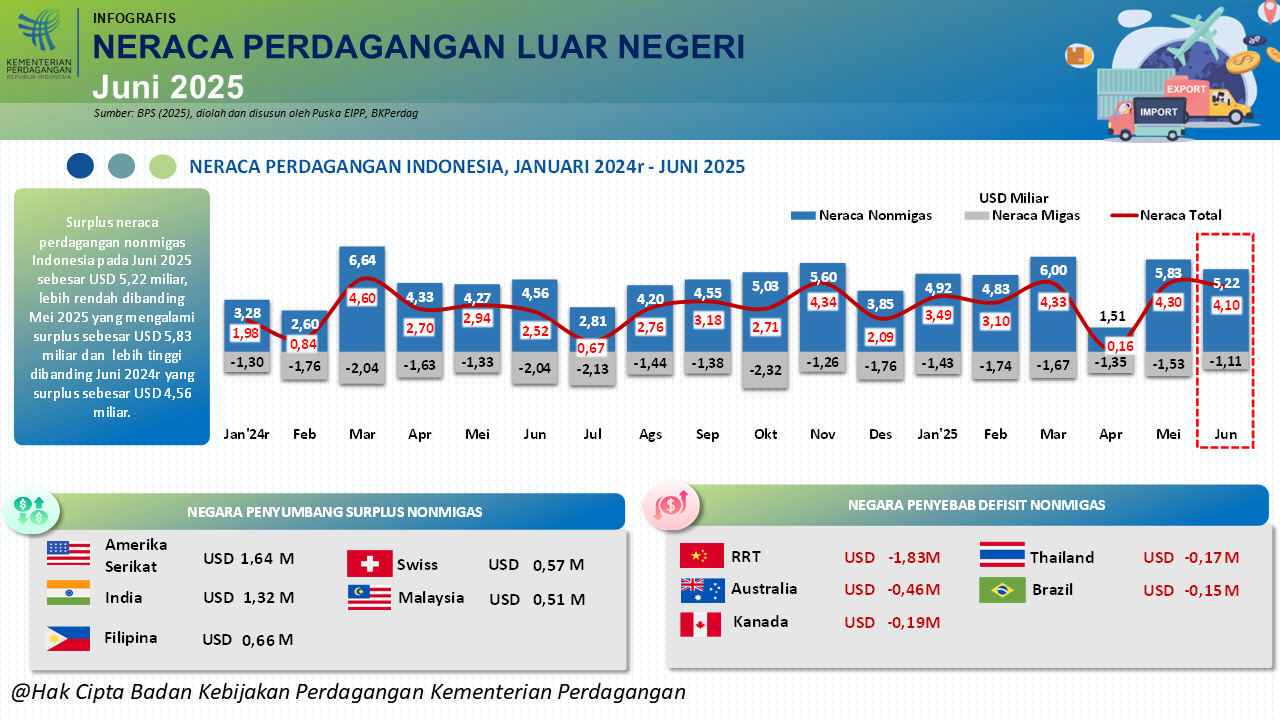 Neraca Perdagangan Luar Negeri Indonesia Periode Juni 2025. Neraca Perdagangan Luar Negeri Indonesia Periode Juni 2025