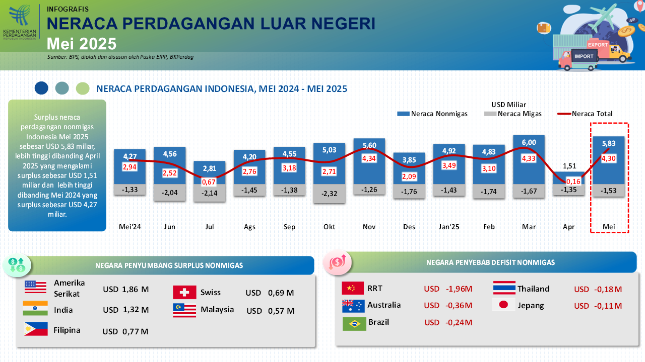 Neraca Perdagangan Luar Negeri Indonesia Periode Mei 2025. Neraca Perdagangan Luar Negeri Indonesia Periode Mei 2025
