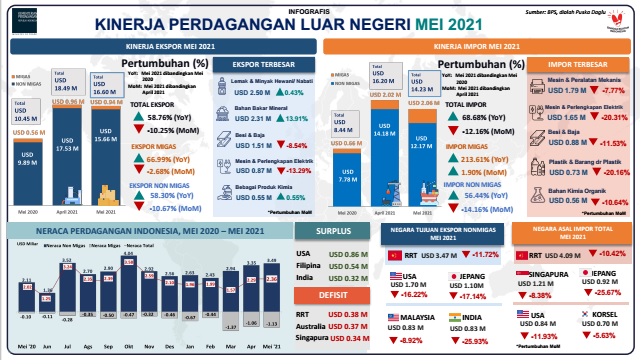 Neraca Perdagangan Mei Surplus Mencapai USD 2,36 Miliar. Kinerja Perdagangan Ekspor Impor Periode Juni 2021